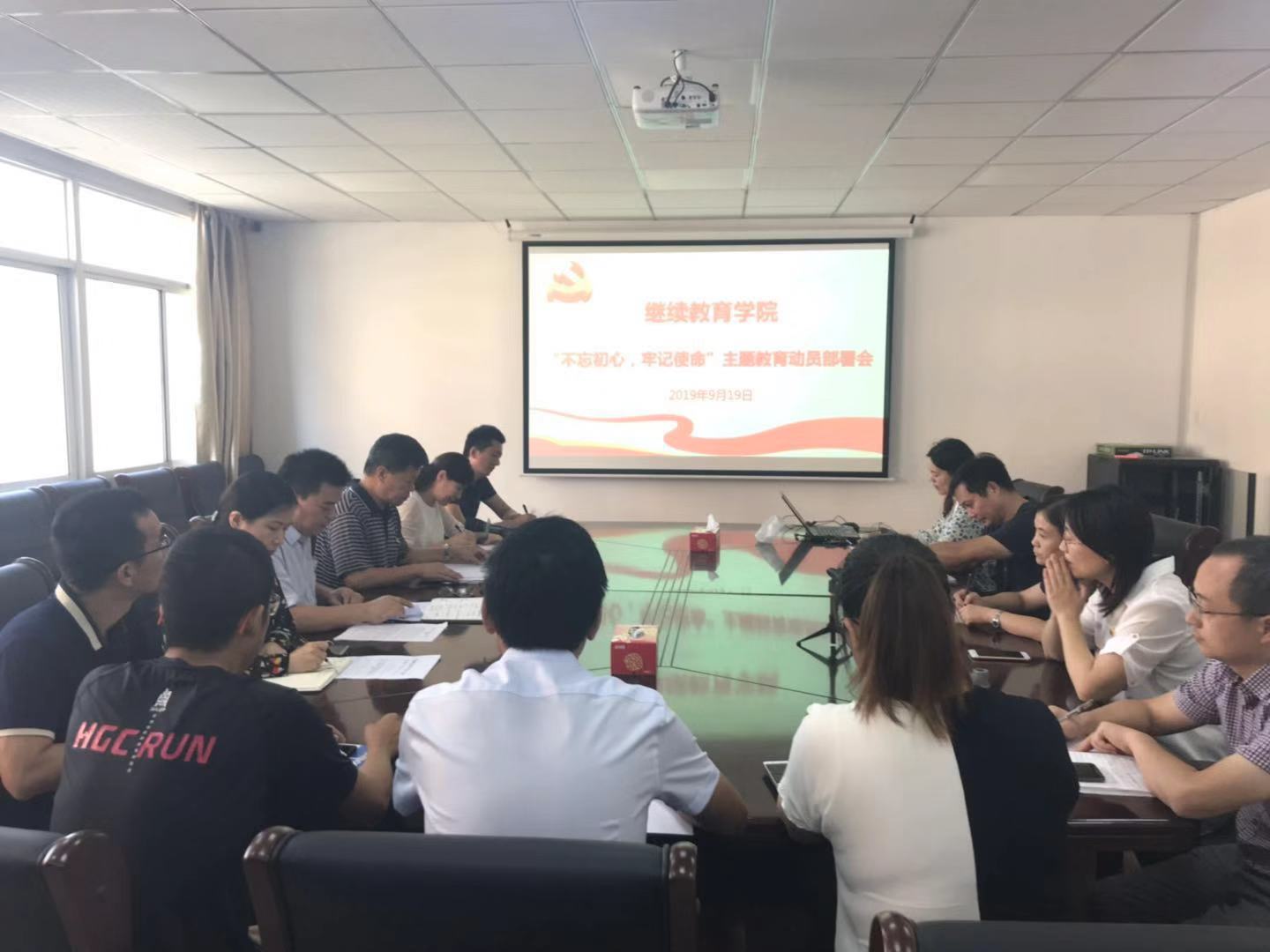 9月19日上午,继续教育学院在锁金校区教学楼420会议室召开“不忘初心、牢记使命”主题教育动员部署工作会议。院党委副书记、院长熊大辉主持了会议,院党委书记薛晓华作动员讲话,对全院开展主题教育活动进行了部署。继续教育学院全体教工党员参加了会议。