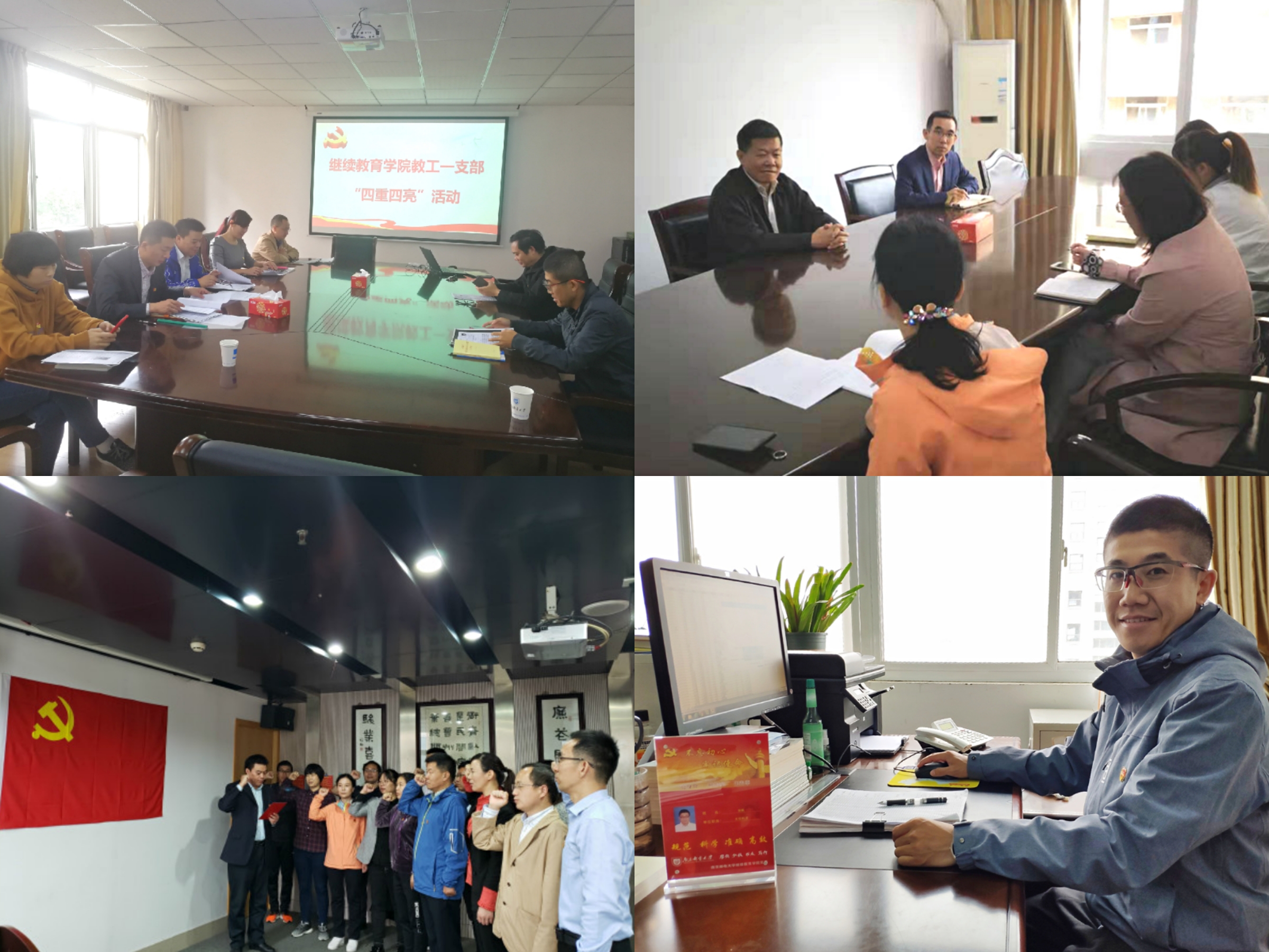 为深入推进“不忘初心、牢记使命”主题教育,对照《关于开展“四重四亮”活动的工作方案》文件精神,继续教育学院党委各支部围绕“守初心、担使命、找差距、抓落实”总要求,结合“初心是什么、使命干什么、奋斗比什么”讨论,陆续开展了党员“四重四亮”主题党日活动。