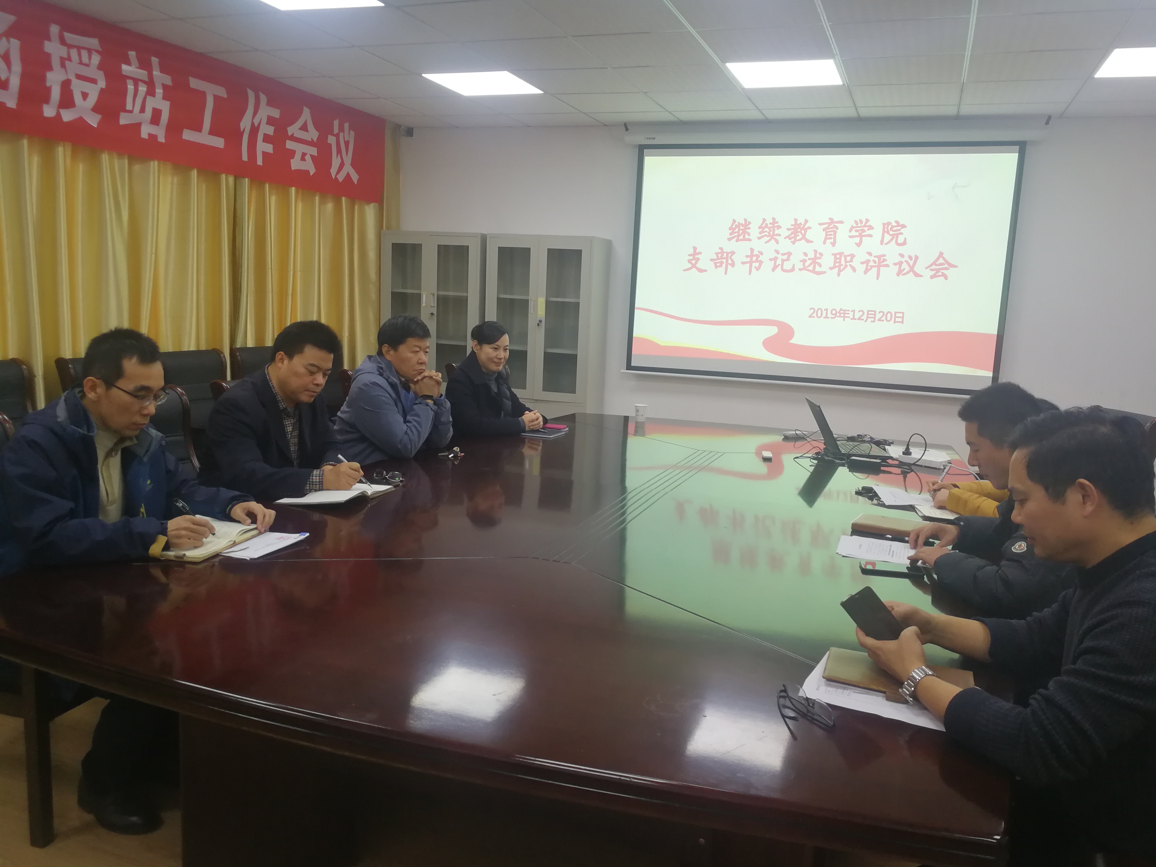 为贯彻落实全面从严治党要求,加强党的基层组织建设,12月20日下午,继续教育学院党委召开2019年度党支部书记述职评议会。会议由学院党委书记薛晓华主持,学院党委委员、全体支部书记、组织员参加会议。