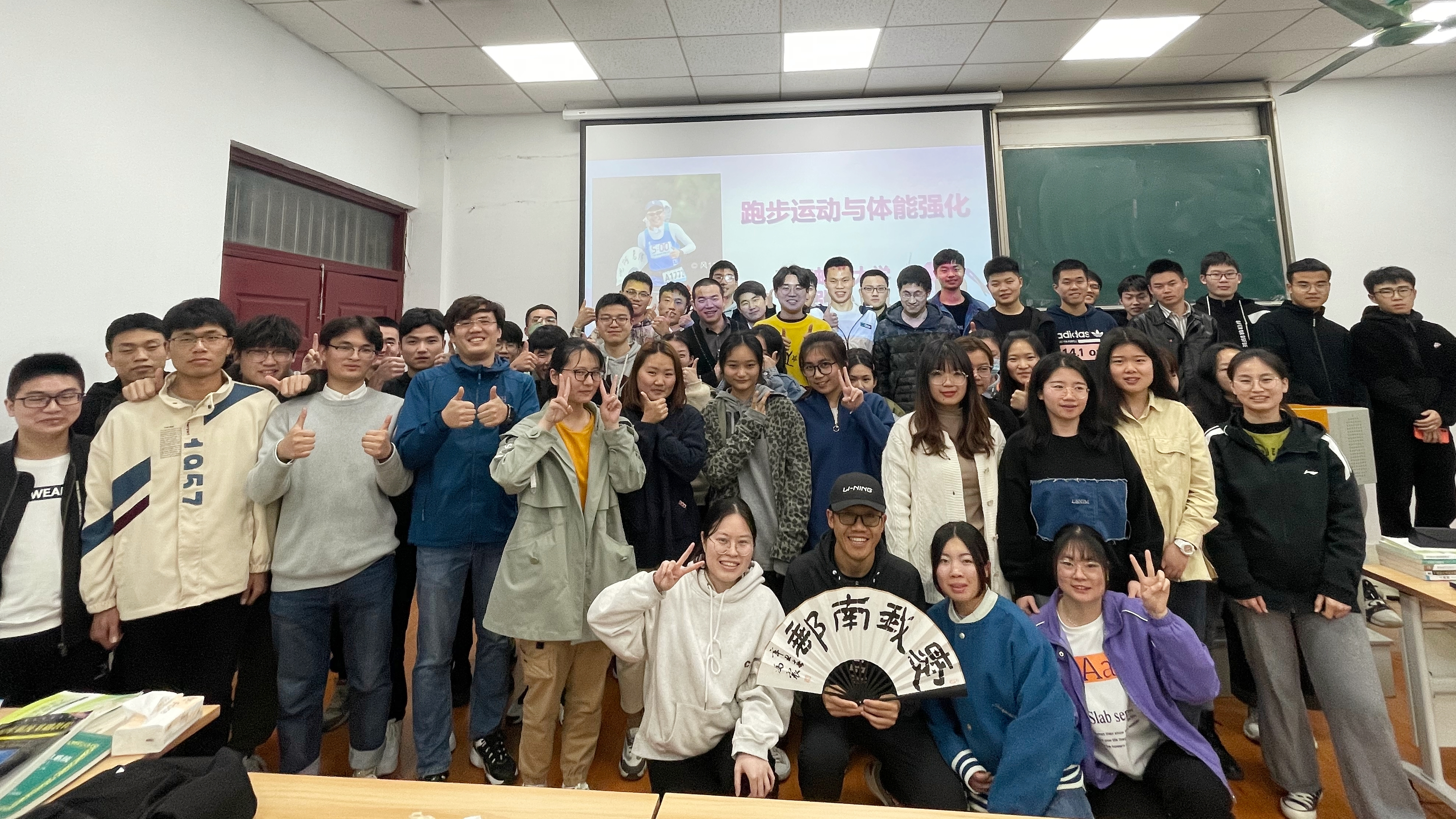 张帆老师介绍了跑步运动的基础知识、马拉松、越野跑等运动项目。关于如何开始跑步,如何爱上跑步,张老师给出了重要建议。在和学生互动环节中,张老师还为同学们精心准备了小礼品,受到现场学生的热烈欢迎。