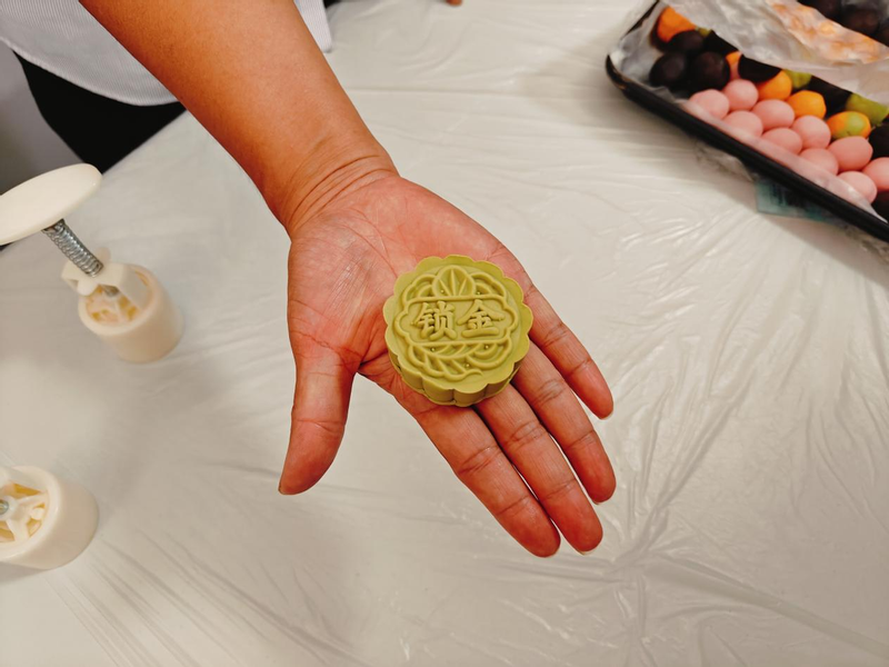 在阿姨们的指导下,学生们开始动手制作月饼。他们将面团揉成一个个小圆球,然后压扁,放入自己喜欢的馅料,再小心翼翼地将边缘捏紧,最后用模具将月饼压出精美的花纹。虽然有些学生是第一次制作月饼,但在阿姨们的鼓励和帮助下,他们逐渐掌握了技巧,一个个形状各异、花纹精美的月饼逐渐呈现在大家眼前。看着自己亲手制作的月饼,学生们脸上洋溢着自豪和喜悦的笑容。